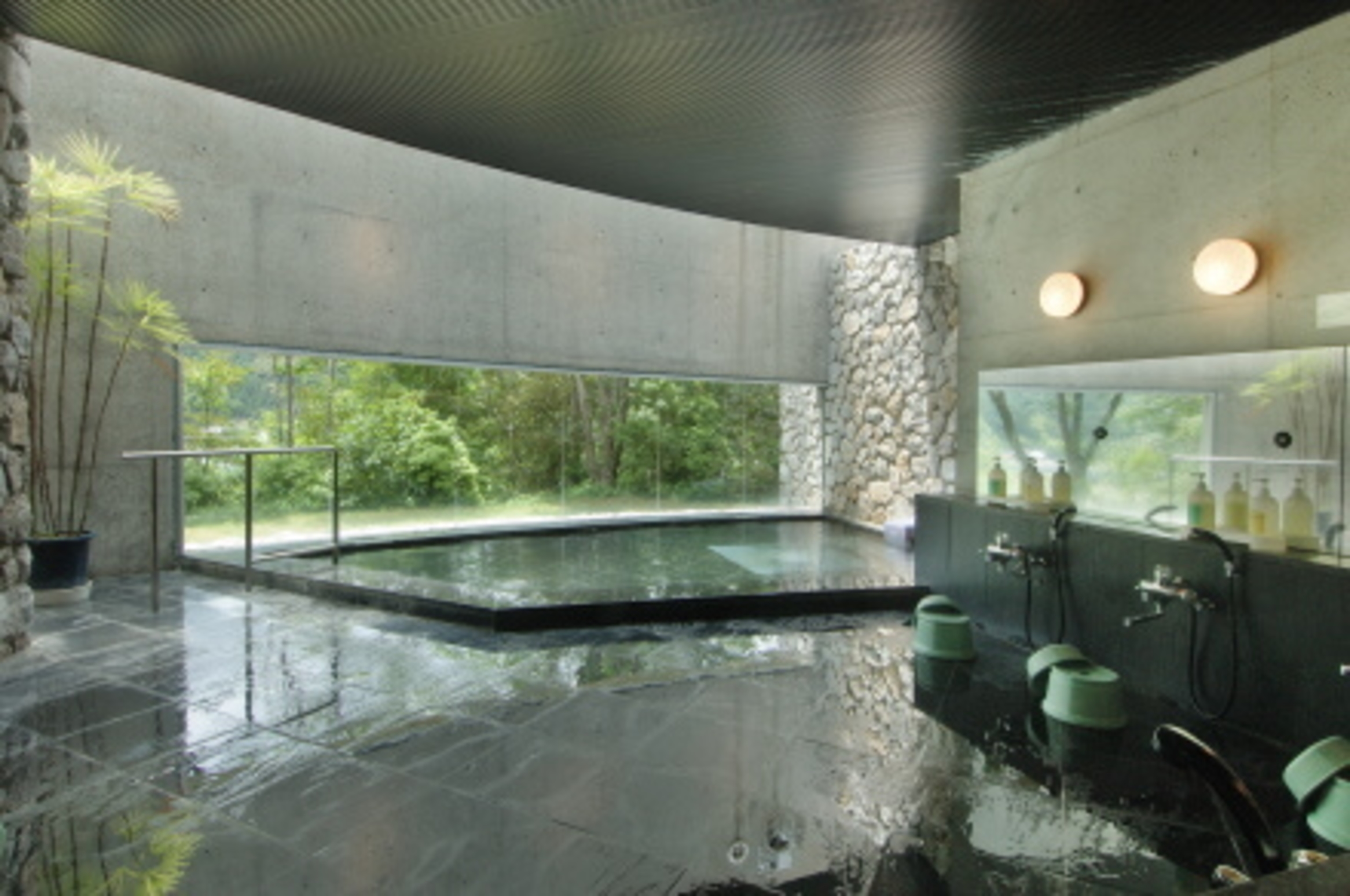 四万十川本流を見下ろす高台に建ち、石造りの大浴場から四万十川を眺めることができます。